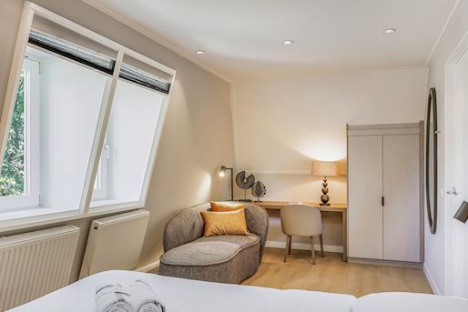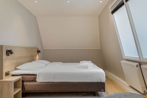 - Stort soveværelse med dobbelt Auping-boxmadras (med dobbeltdyne og dobbelt topmadras) og komfortabel sofa